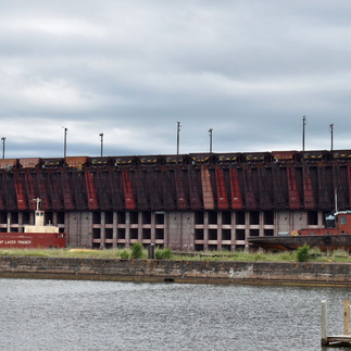 Yesterday, I wrote about the iron ore industry in the area. Today, we found another port. That same ship we saw yesterday was at this port getting loaded with iron ore pellets. It is at another Ore Dock. The Ore Dock has a sign that it has been working for 100 years (probably with a lot of upkeep). I was able to get closer to take pictures of it.