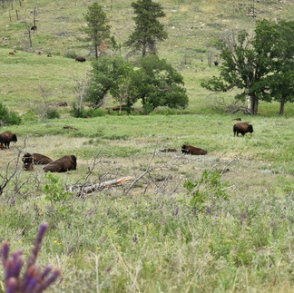 To get to the bison, we had to go way down a dirt road. There were a lot of bison. People did stay away from them. I guess they are mostly wild. They do round them up once a year to give them medication. Other than that, they are free to roam the whole state park.